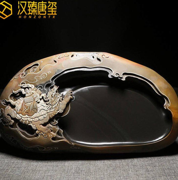 汉臻唐玺孤品歙砚名师手工雕刻《龙龟献瑞》浮雕四大名砚台文房四热门设计联盟服务商