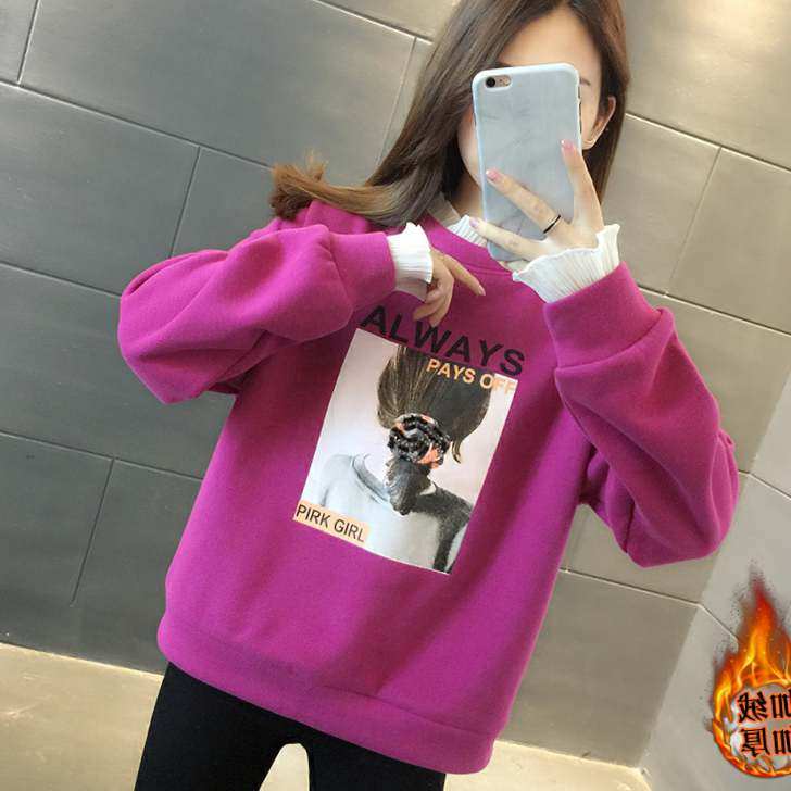 新款秋冬装宽松短款加绒加厚卫衣女假两件上衣外套冬季2020年款热门设计联盟服务商