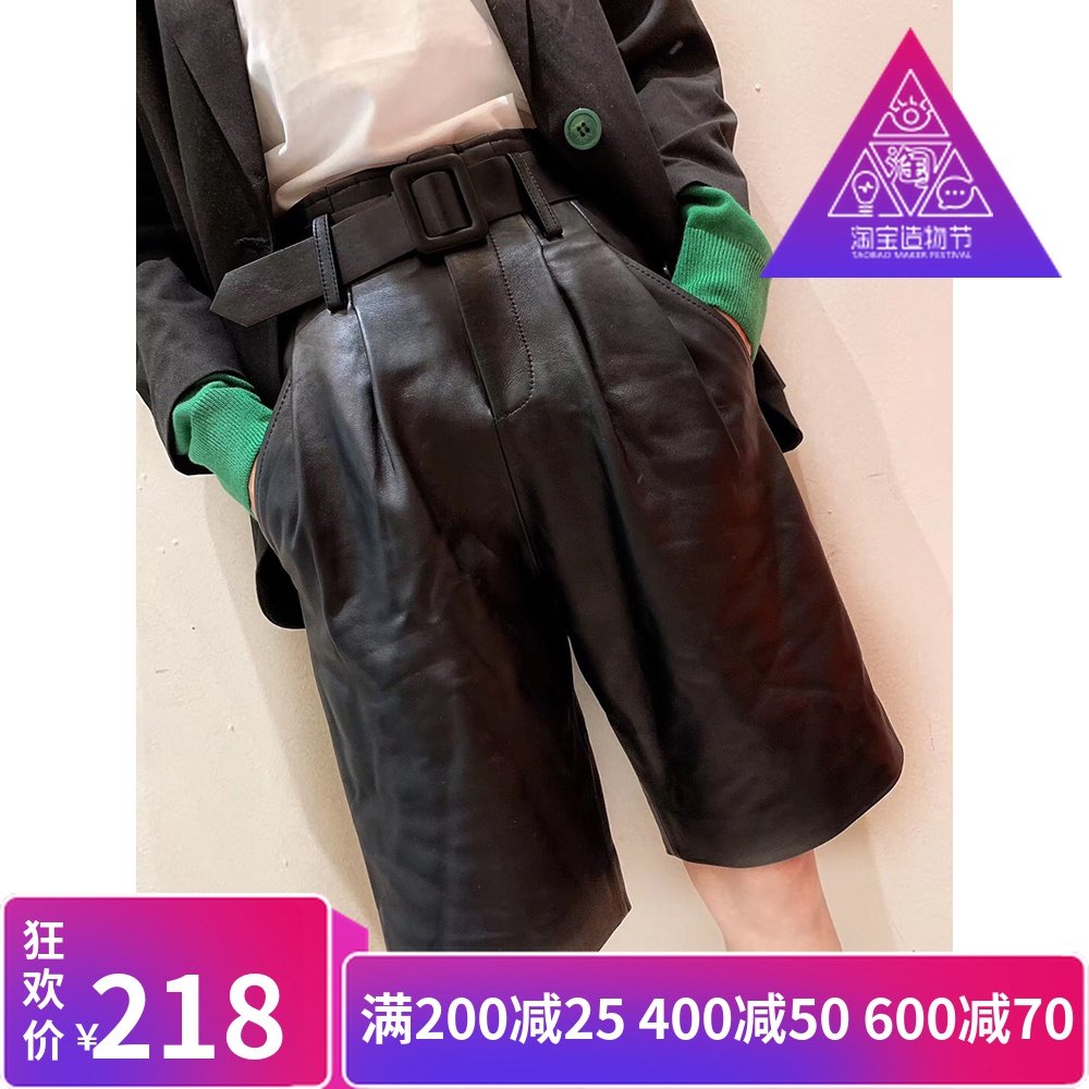 欧货款真皮五分裤女 绵羊皮休闲腰带皮裤 秋冬新款直筒裤中裤潮热门设计联盟服务商
